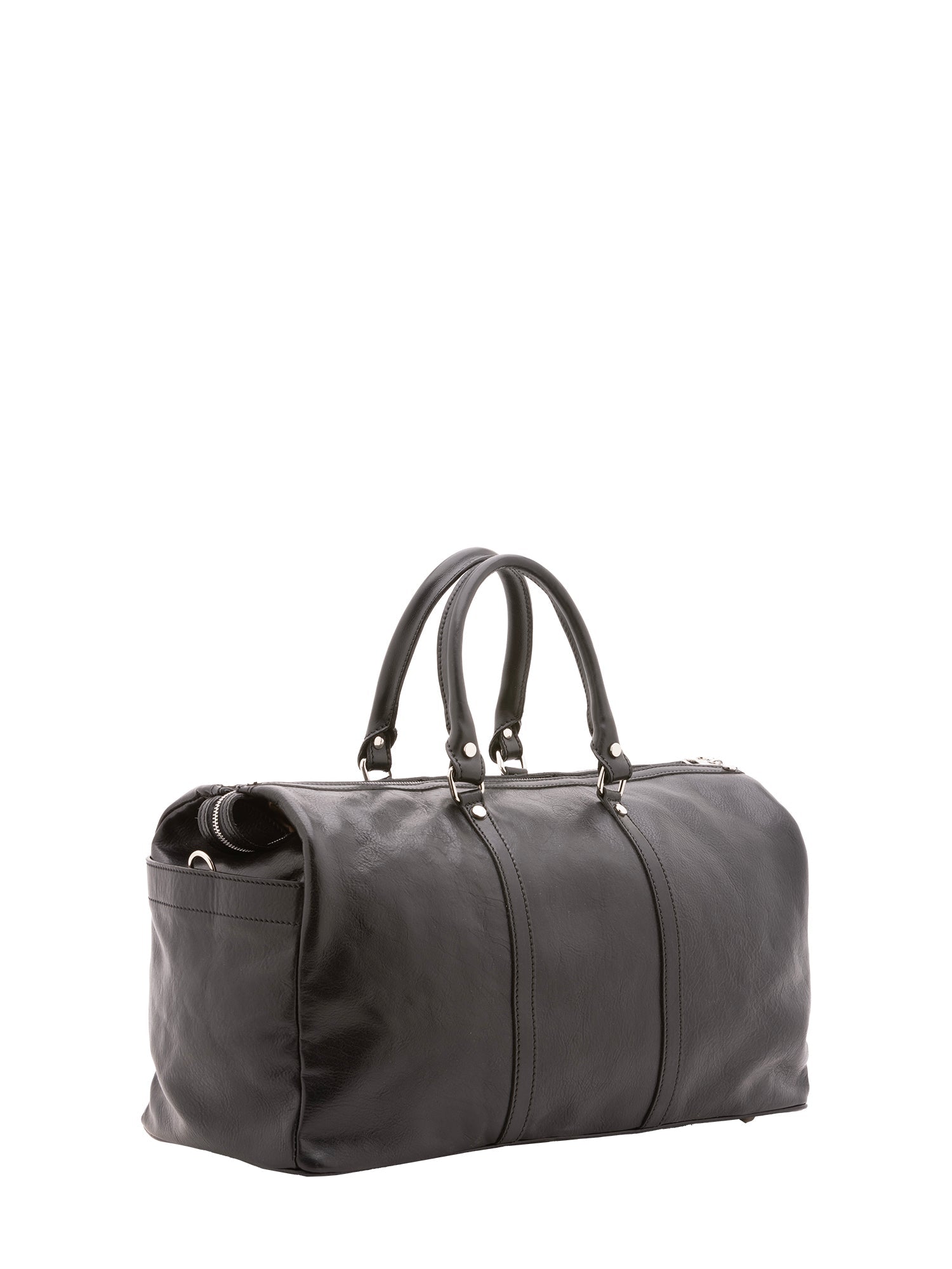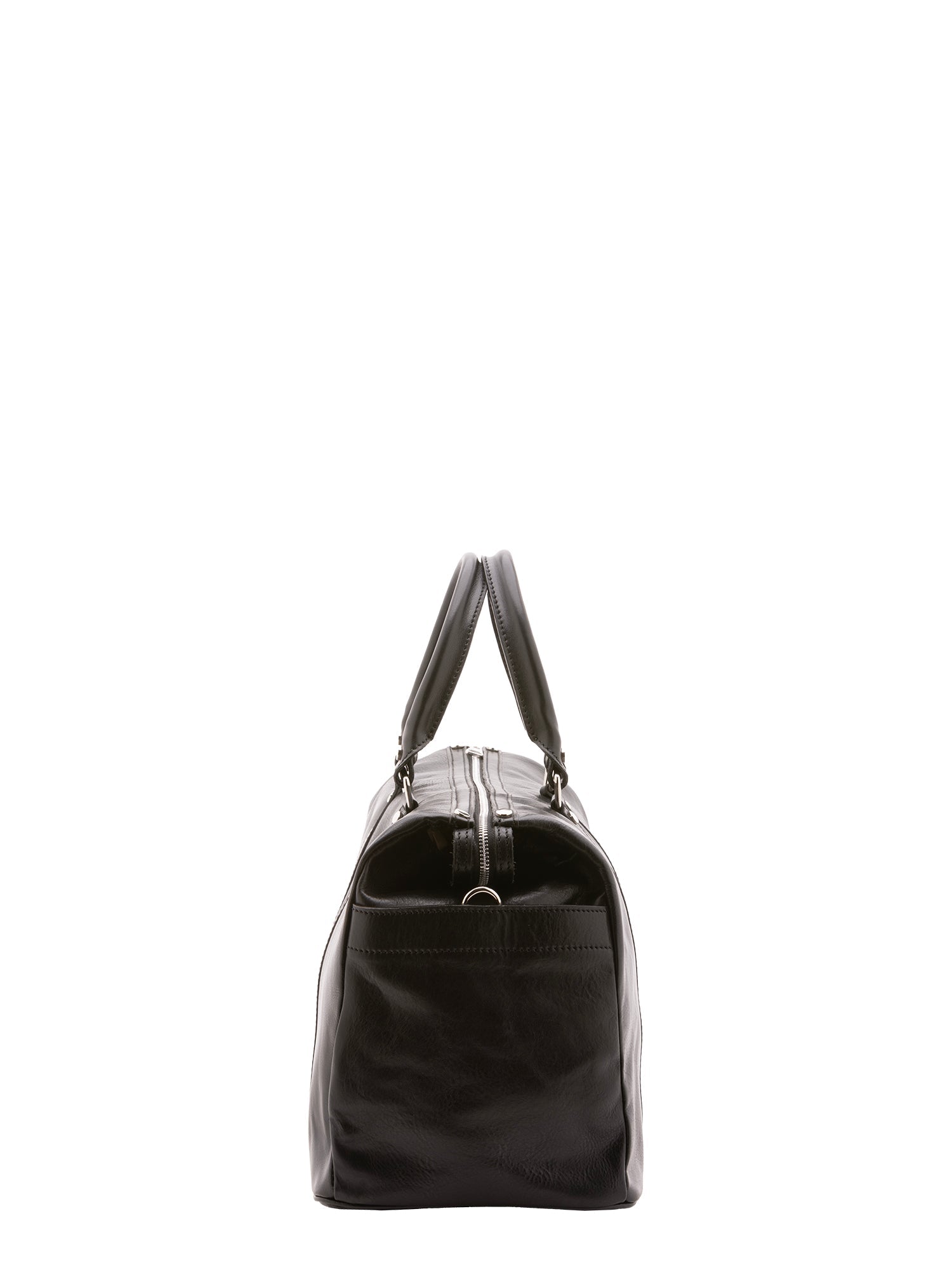 Borsa da viaggio unisex. La chiusura è con zip. Le tasche interne sono una con zip e una aperta. Le tasche esterne sono assenti. La tracolla è regolabile e rimovibile in pelle . Il manico è in pelle. Gli scomparti interni sono uno. Il materiale esterno è 100% Vera Pelle. Internamente è foderato in cotone. Misure: 50x35x20 cm . Made in Italy
